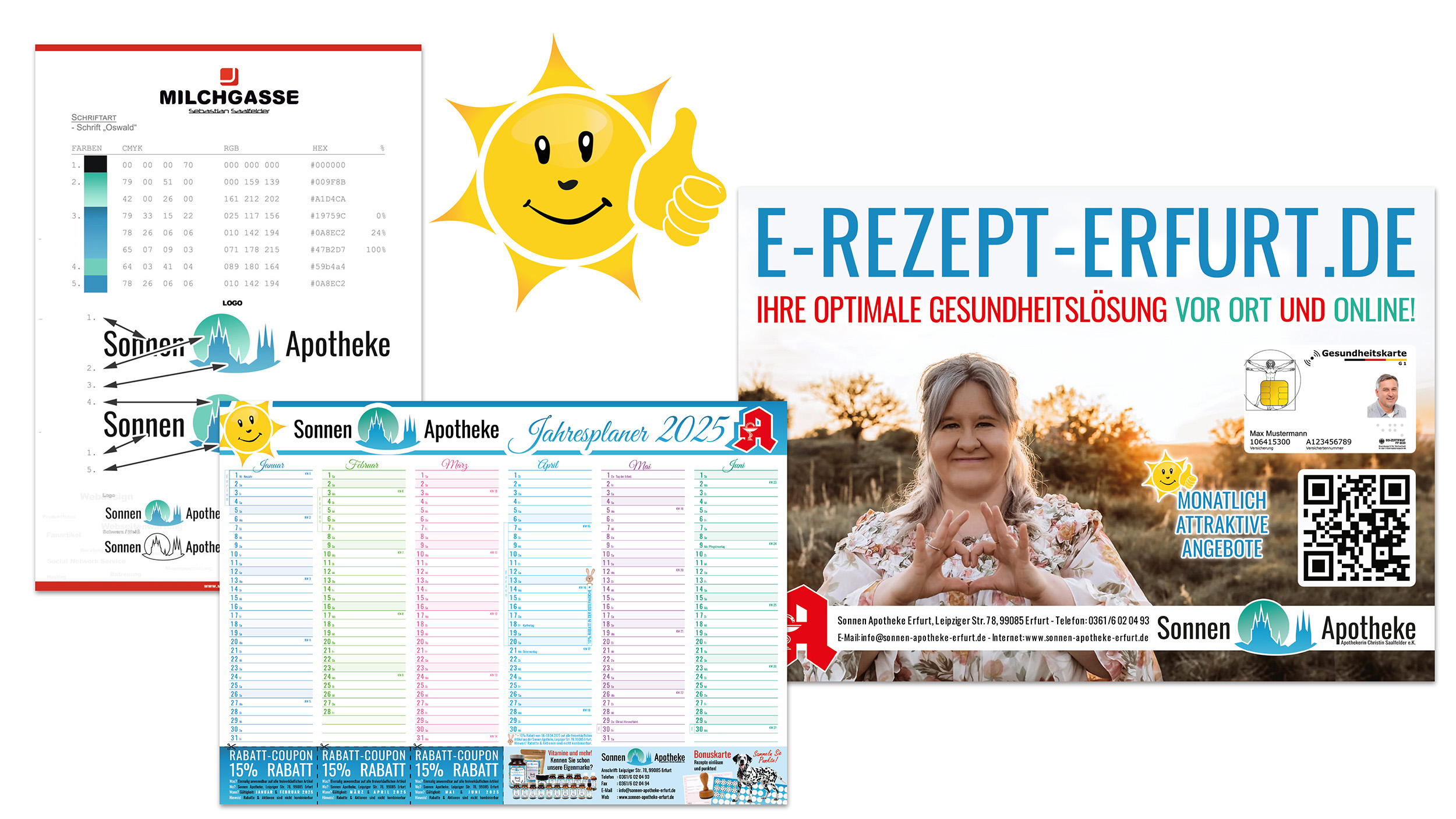 Taschenkalender, Aufsteller, Gutscheine, Plakate und Schaufenster